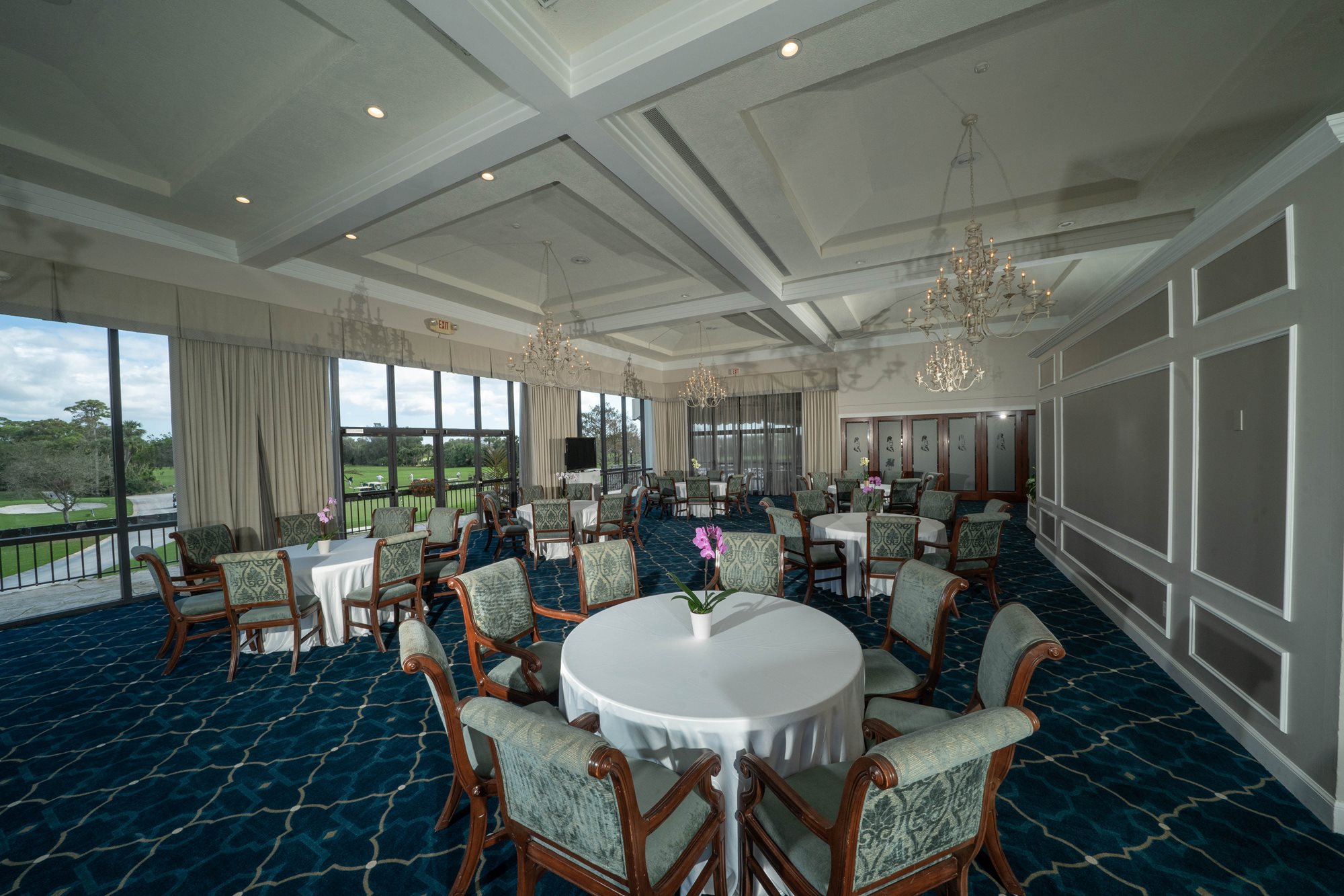 Mayacoo Lakes is pleased to offer its members and guests a wide variety of dining options, from casual to formal. With warm and inviting spaces for special gatherings; there is something for everyone and for every occasion. Starting with the Grille Room, featuring a stone front fireplace that draws you into the space, Guests can enjoy the relaxed atmosphere for lunch or dinner. The Outside Patio deck, overlooking Mayacoo's Golf Digest Award-Winning Golf Course, is a popular dining extension of the Grille. Moving into the Main Dining Room, with its warm Northern feel, this space can accommodate up to 150 guests for dinner. The continental style menu offers a wide variety of menu options and the choices are plentiful and pleasing to all. The Main Bar is open daily and along with the full complement of drinks. This is a place where our Members and Guests meet up after a round of golf or before they transition into the Grille or Main Dining Room for a meal or gather before heading out for the evening. Another casual and easy Mayacoo dining venue is the Snack Bar. Open daily all season long, our guests can stop by the Snack Bar during a round of golf, after finishing a game of tennis or while simply relaxing around the champion-sized swimming pool. Speaking of the pool, there is a great undercover patio for kids birthday parties that works equally well for a special cocktail reception.